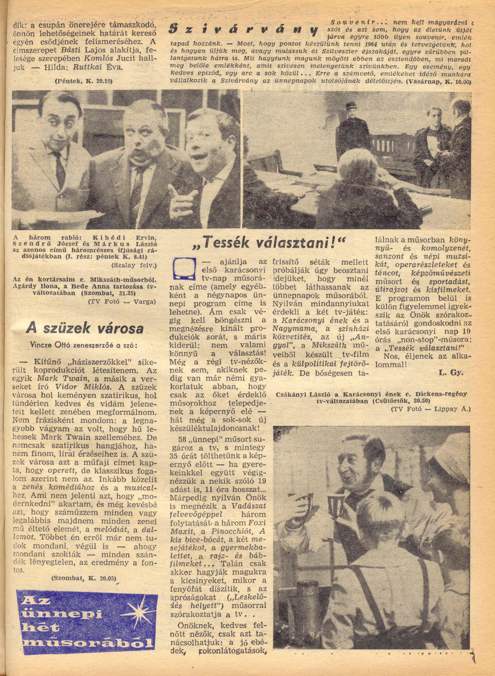 1964. december 26., Kossuth, 20.05 – 22.05 A Rádió Dalszínházának bemutatója